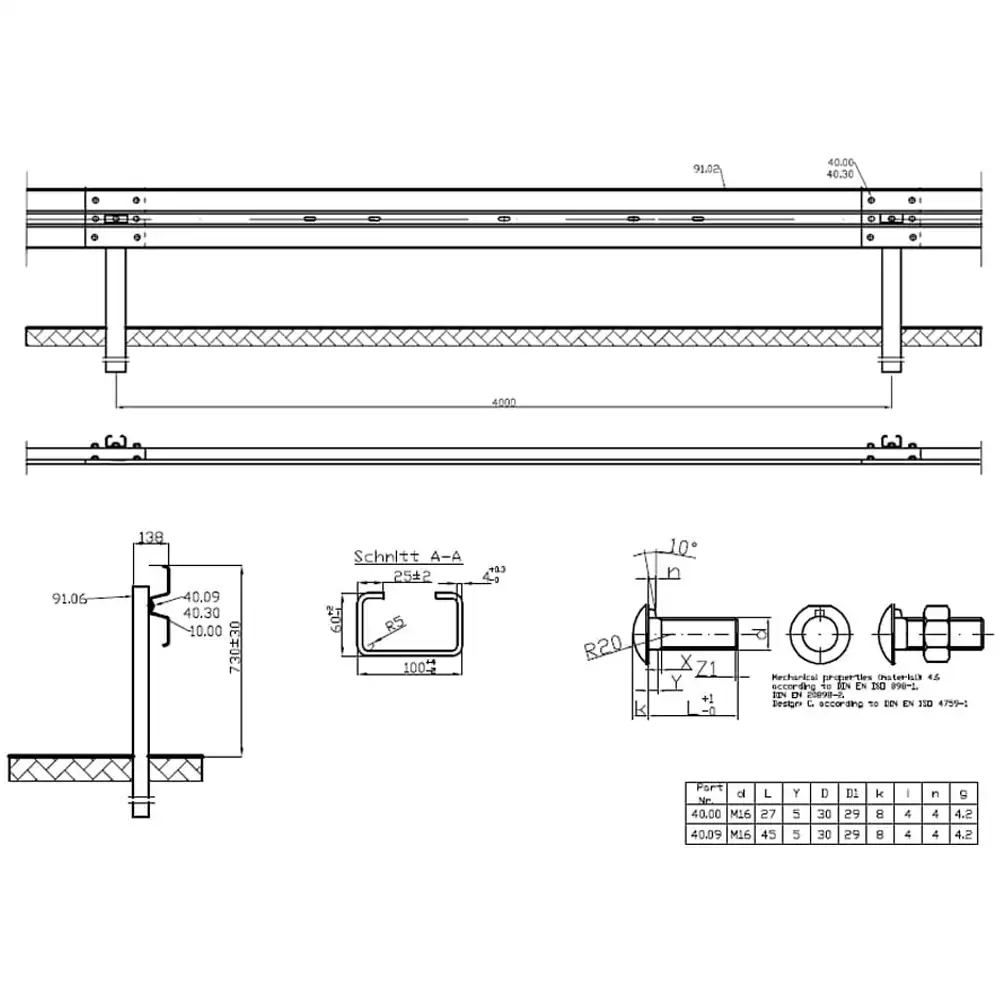 Bariera ochronna N2W4A - rozstaw słupka co 4 mb