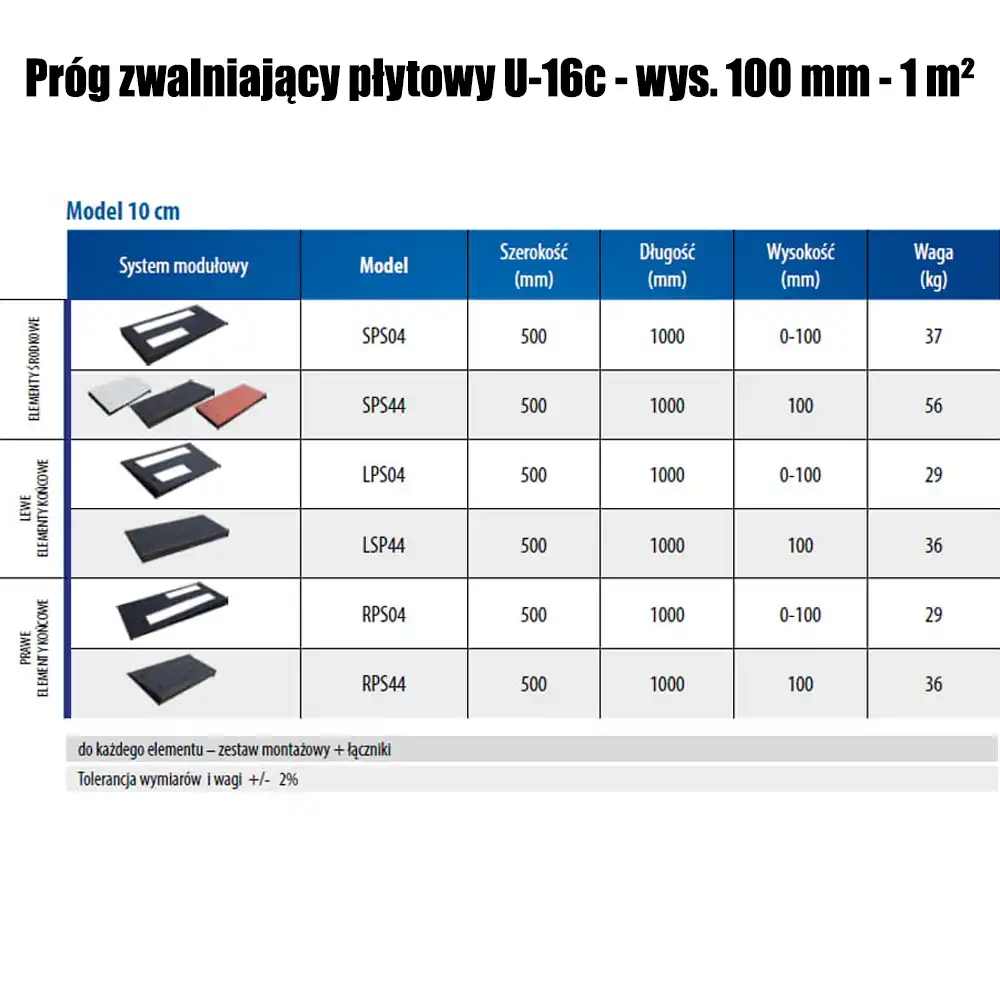 Próg zwalniający płytowy U-16c - wys. 10 cm