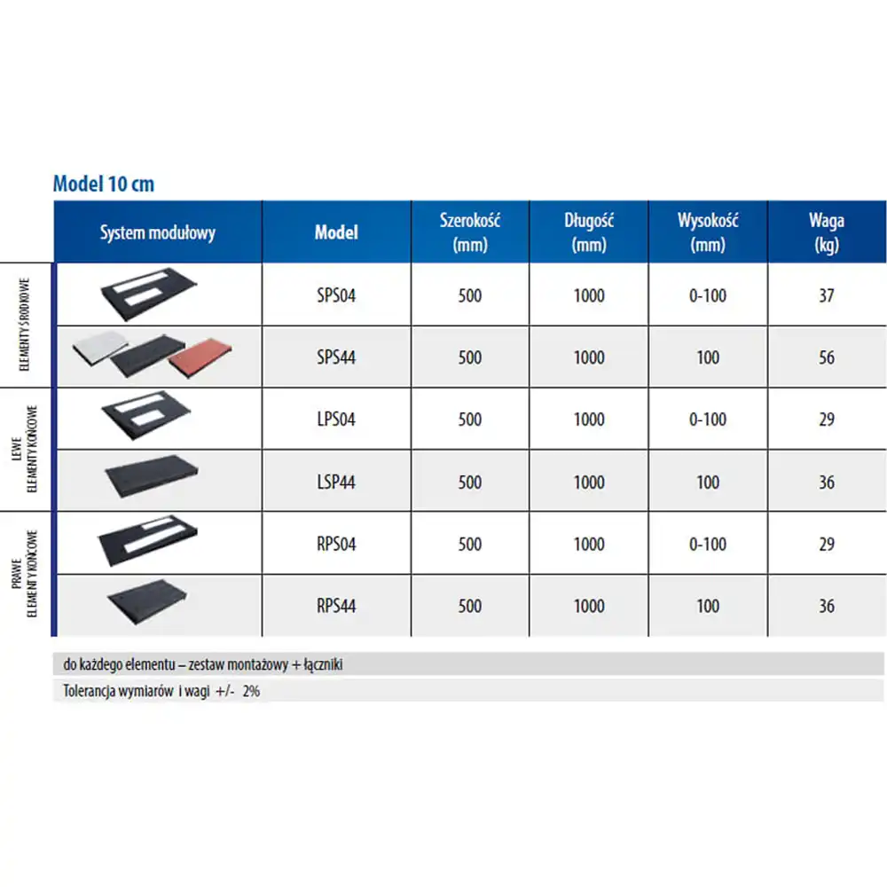 Próg zwalniający płytowy U-16b - wys. 100 mm - 6000x6000 mm
