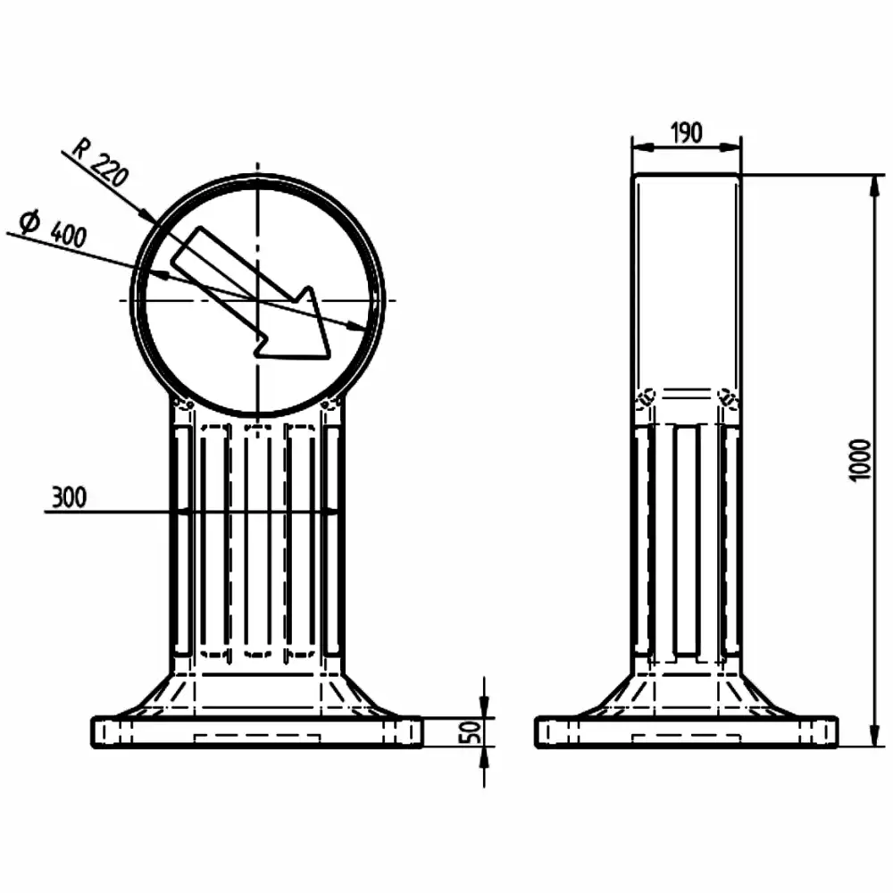 Słupek Drogowy U-5b - Oklejony Dwustronnie - fi 400 mm