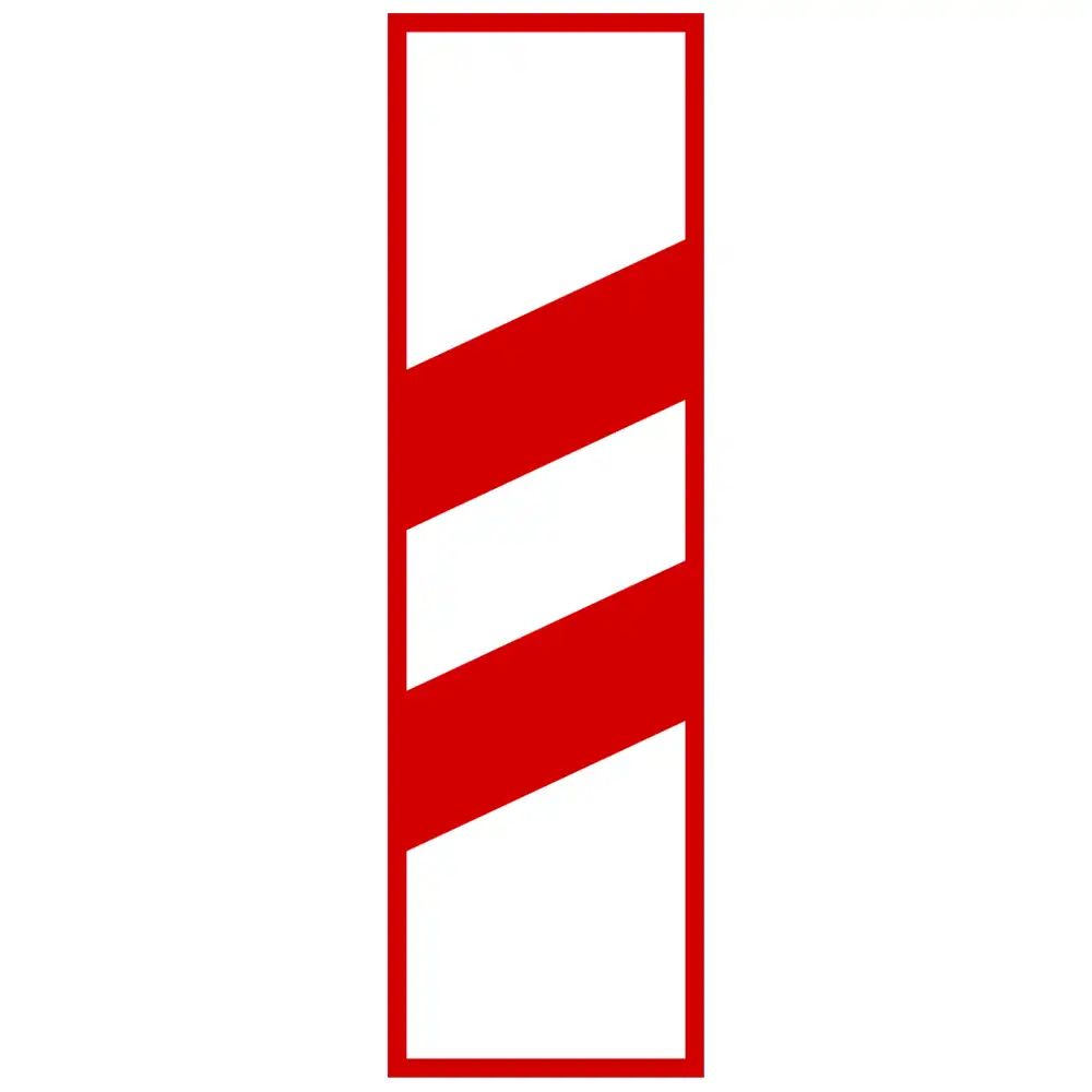 Słupek wskaźnikowy z dwiema kreskami umieszczany po prawej stronie jezdni przed przejazdem kolejowym.