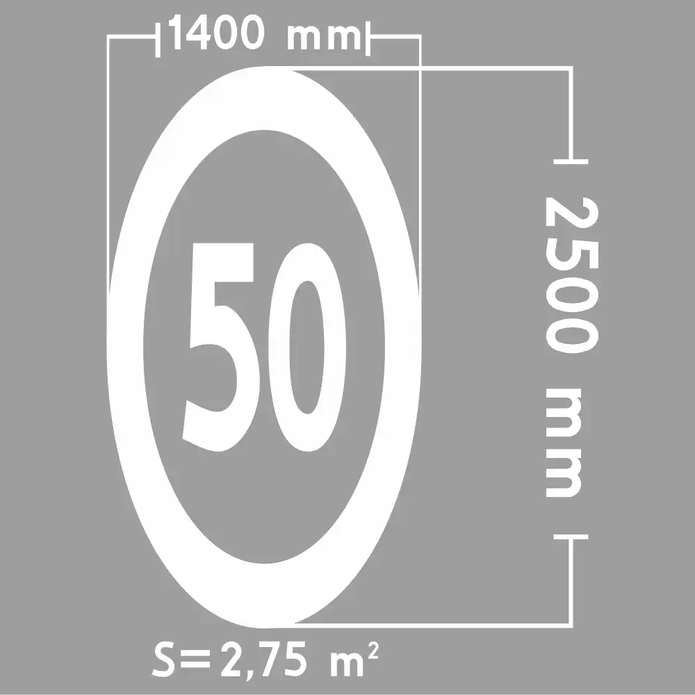 Termoznak do bezpiecznej organizacji ruchu na terenach przedsiębiorstw, w magazynach i na parkingach zakładowych. Znak o średnicy 1 metra (powierzchnia 0,7854 m²) z cyfrą "50" jest wykonany z masy termoplastycznej, odpornej na intensywne użytkowanie, ścieranie i nieprzychylne warunki pogodowe. Skuteczne wdrożenie ograniczeń prędkości minimalizuje ryzyko wypadków. Trwałość materiału termoplastycznego zapewnia długi okres eksploatacji. Szybka, bezproblemowa aplikacja.
