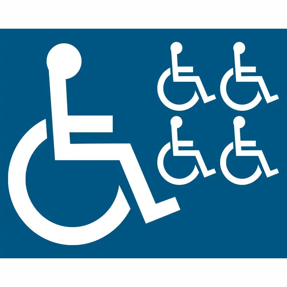 - Miejsca postojowe: oznakowanie stanowisk parkingowych dla osób niepełnosprawnych przy budynkach użyteczności publicznej, centrach handlowych, szpitalach, urzędach, dworcach oraz w strefach miejskich.