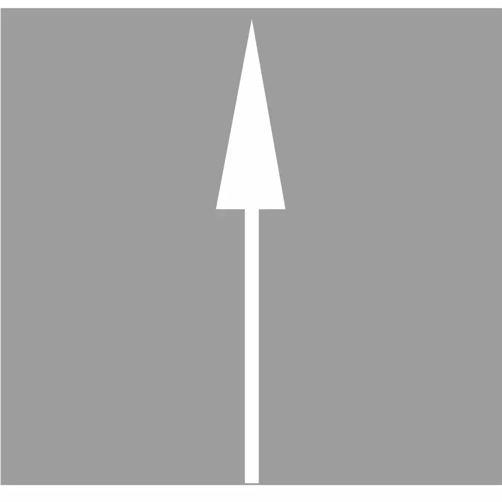 Termoznak P-8a „strzałka kierunkowa na wprost” to element poziomego oznakowania drogowego, stosowany w celu precyzyjnego określenia dozwolonego kierunku ruchu z danego pasa jezdni. Jego obecność na drodze jednoznacznie wskazuje kierującym pojazdami, że z pasa, na którym jest umieszczony, dozwolona jest wyłącznie jazda na wprost. Jest to niezbędne dla zachowania płynności ruchu i bezpieczeństwa na wielopasmowych drogach i skrzyżowaniach.