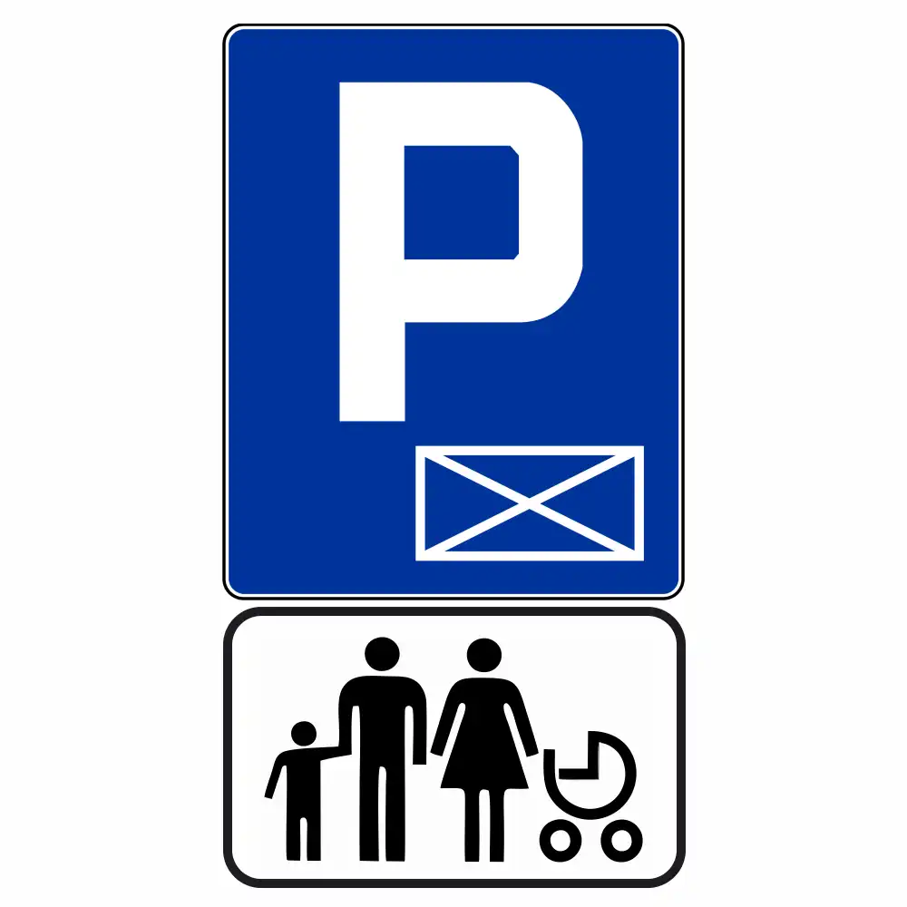 Zestaw Znak D-18a + Tabliczka z Grafiką – Parking dla Rodziny z Dziećmi - folia I generacji