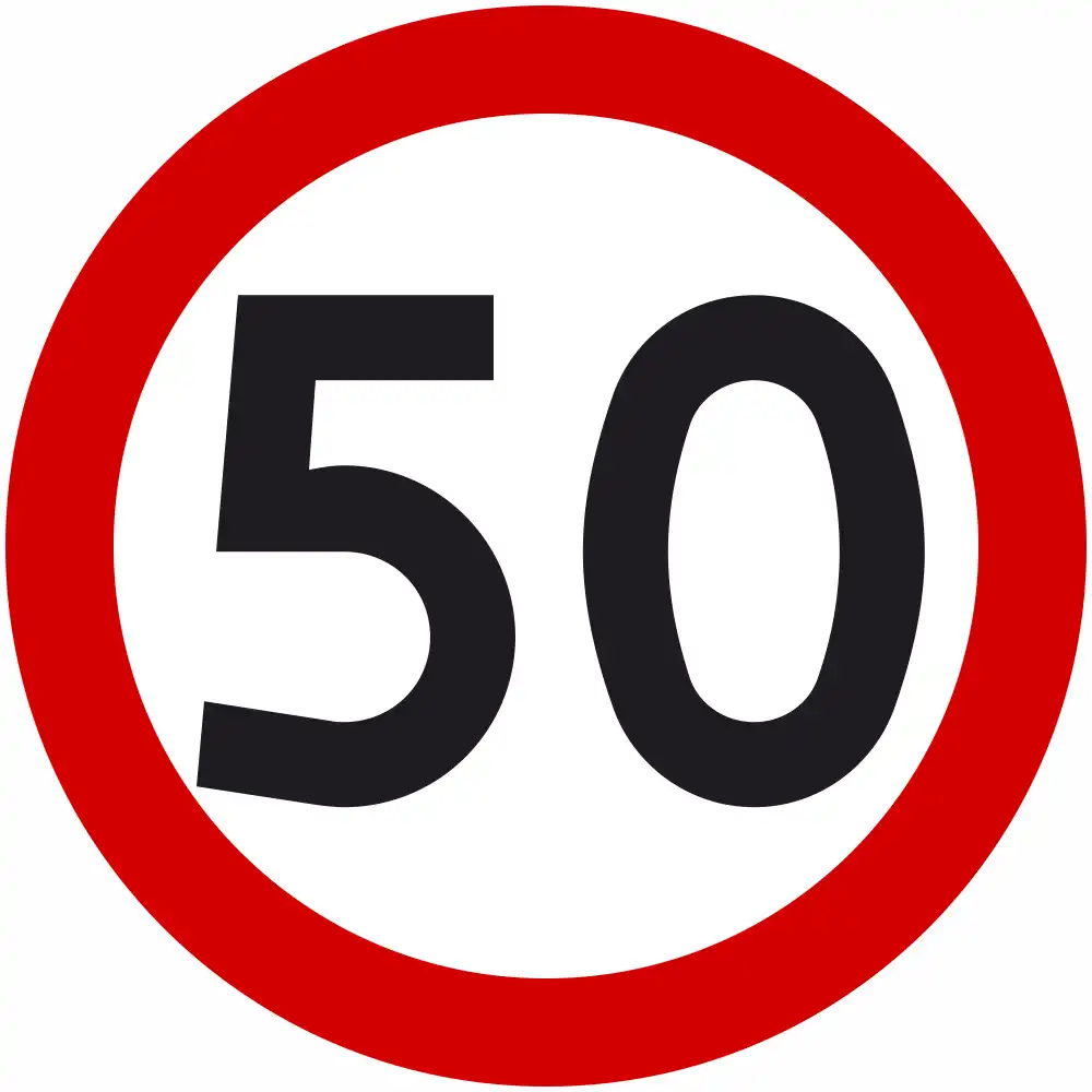- 50 km/h poza obszarem zabudowanym; niższe prędkości można stosować wyjątkowo na krótkich odcinkach, jeżeli spowodowane jest to stanem technicznym drogi lub obiektu drogowego albo nagłą zmianą geometrii drogi niezauważalnej dla kierujących, np. mały promień tuku na łącznicy na węźle, a także przy czasowych zmianach organizacji ruchu drogowego;
