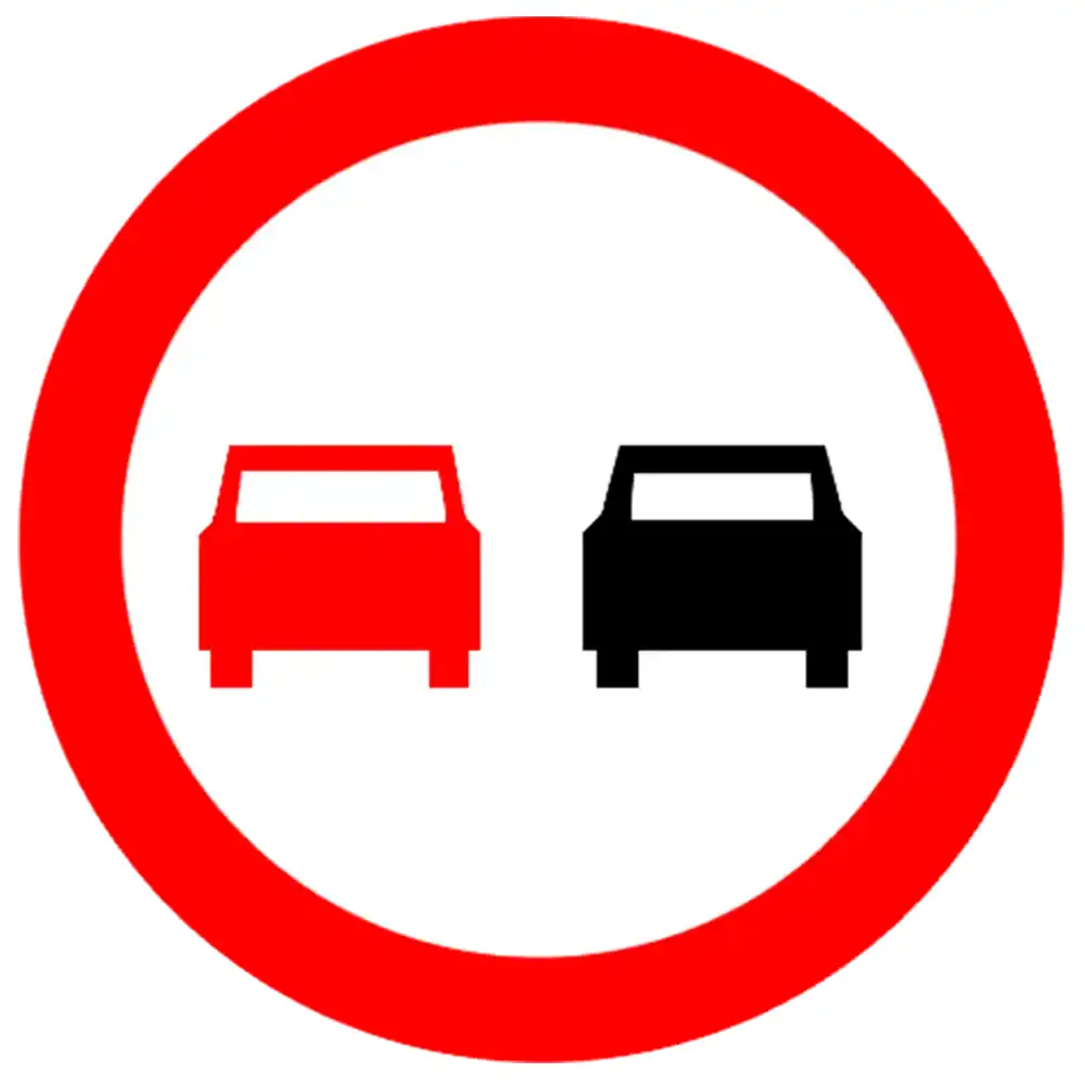 Znak ten zabrania kierującym wyprzedzania wszelkich pojazdów silnikowych wielośladowych. Na odcinku drogi, na którym obowiązuje ten znak, kierujący pojazdem silnikowym może wyprzedzać tylko pojazdy jednośladowe oraz pojazdy niesilnikowe.