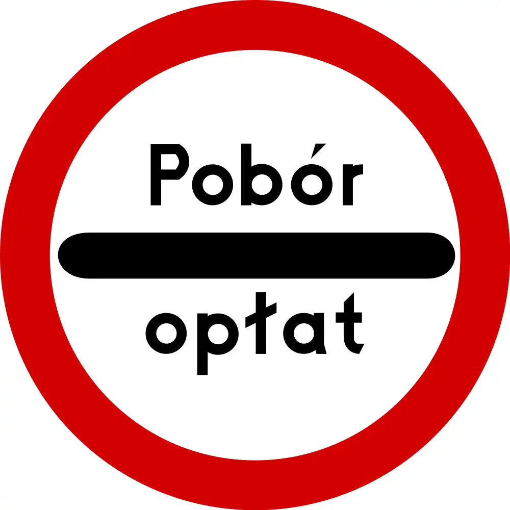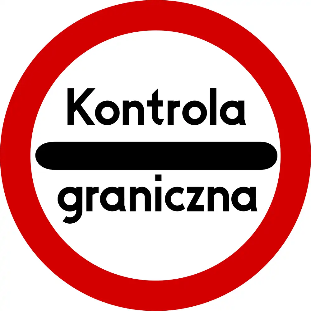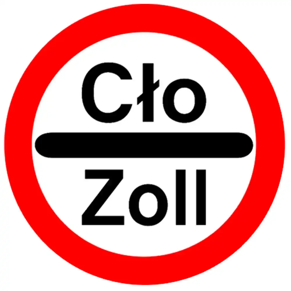 okrągły znak z czerwonym obramowaniem i białym tłem w środku znaku umieszczony jest napis "Cło-Zoll" lub inny, w zależności od rodzaju kontroli | informuje o obowiązku zatrzymania pojazdu w celu kontroli celnej lub innej kontroli granicznej |