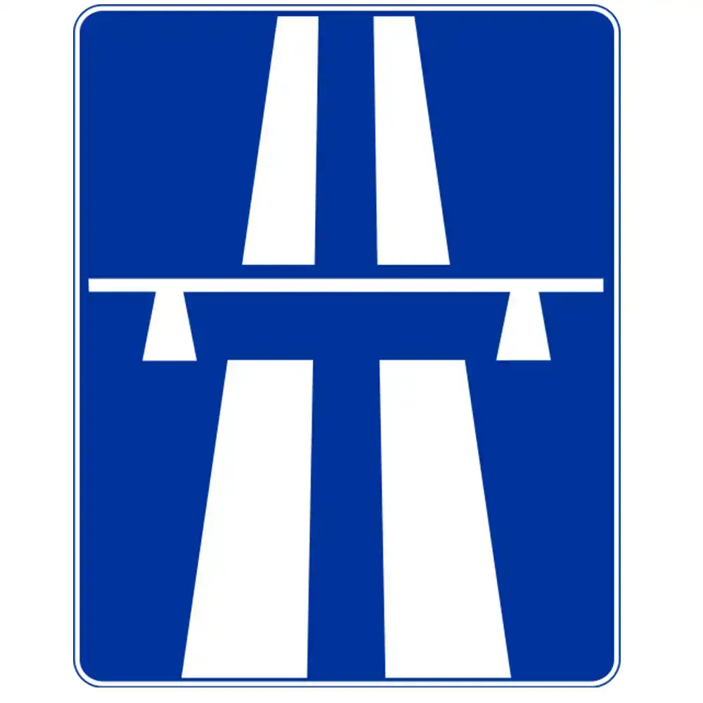 Znak ten informuje kierującego o wjeździe na autostradę. Po autostradzie mogą się poruszać wyłącznie pojazdy samochodowe, które na poziomej drodze mogą rozwinąć prędkość co najmniej 40 km/h, w tym również w razie ciągnięcia przyczep.