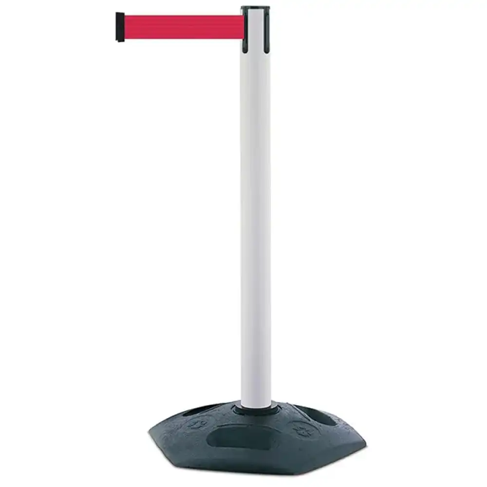 Biały słupek z tworzywa sztucznego TENSATOR® HEAVY DUTY - czerwona taśma dł. 3,65 m
