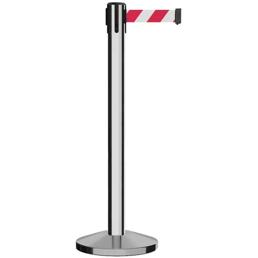 Słupek odgradzający został wykonany ze stali nierdzewnej, która została wysoko-polerowana, dzięki czemu prezentuje się estetycznie i elegancko. Średnica słupka to 63 mm, a średnica podstawy wynosi 320 mm. Wysokość słupka to 930 mm, a waga 9 kg. Dzięki zastosowaniu mocowania taśmy cztero-kierunkowego, słupek odgradzający z biało-czerwoną taśmą ostrzegawczą zapewnia wysoką stabilność i bezpieczeństwo.