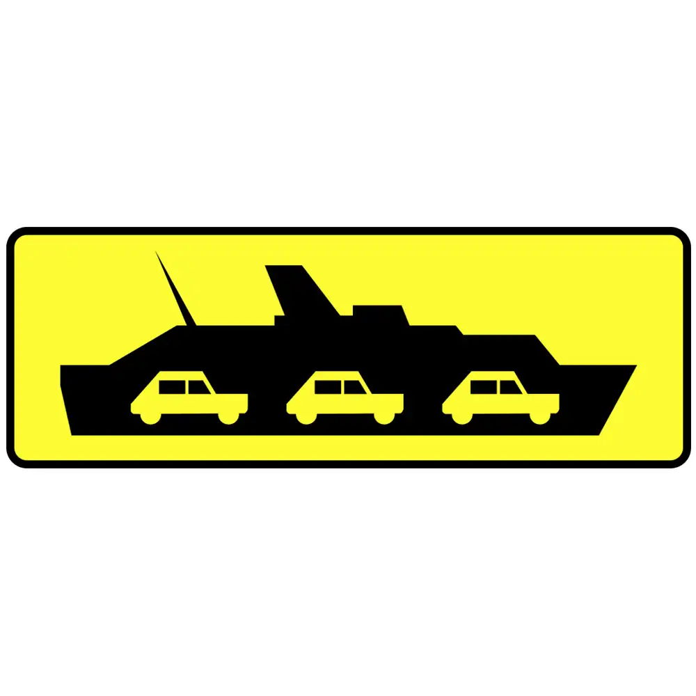 Tabliczka wskazująca przeprawę promową, umieszczana jest wraz ze znakiem A-30 inne niebezpieczeństwo przed dojazdem do przeprawy promowej.
