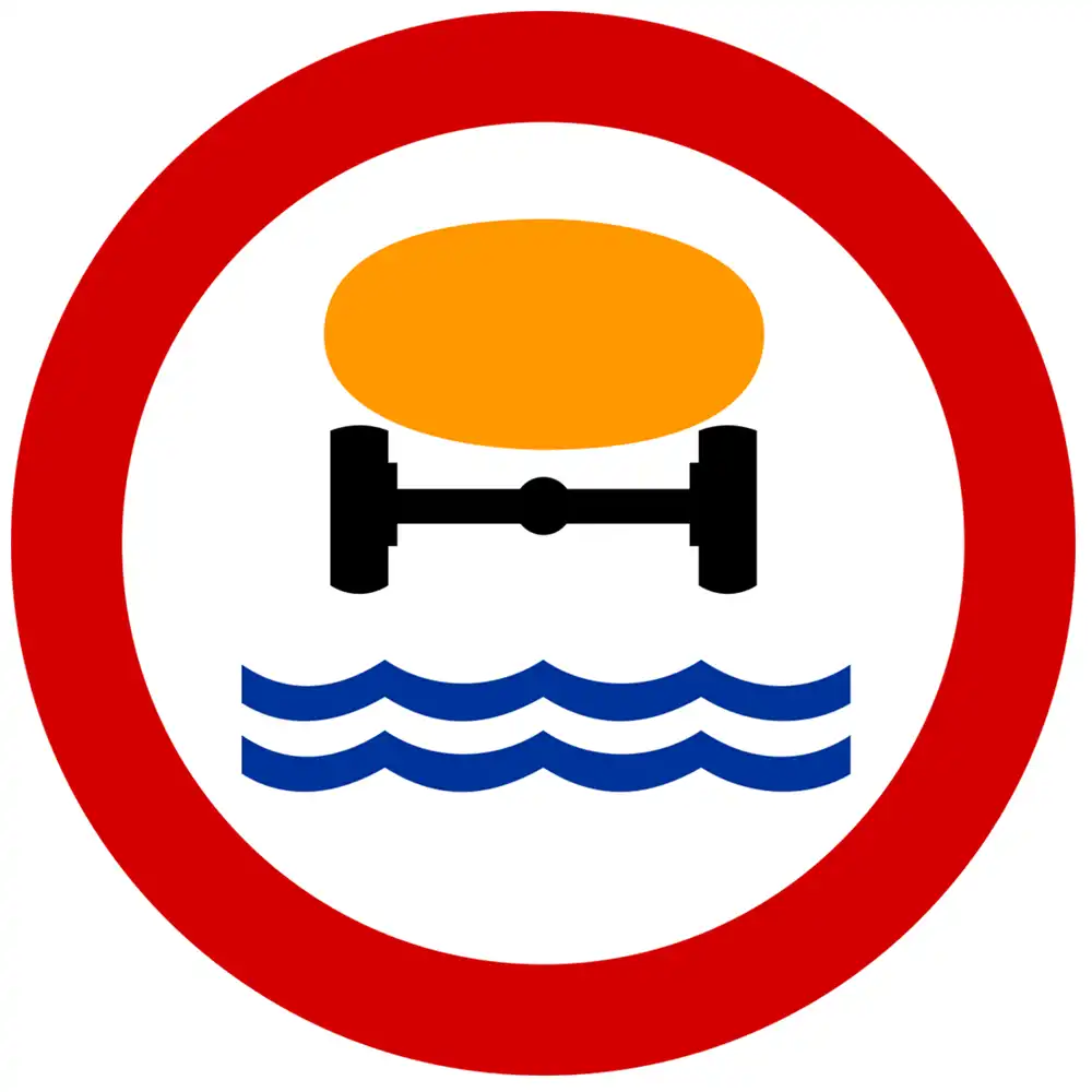 Znak drogowy B-14 "zakaz wjazdu pojazdów z materiałami, które mogą skazić wodę" zakazuje wjazdu na drogę pojazdów, które przewożą materiały mogące skazić wodę w ilościach określonych odrębnymi przepisami. Znak B-14 „zakaz wjazdu pojazdów z materiałami, które mogą skazić wodę" stosuje się w celu wyeliminowania z ruchu pojazdów przewożących towary niebezpieczne.