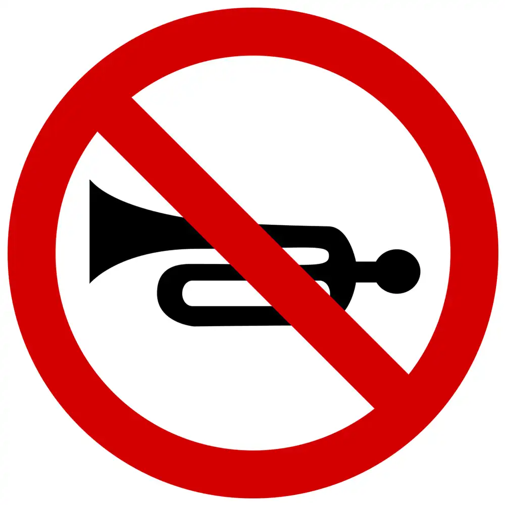 Znak drogowy B-29 "zakaz używania sygnałów dźwiękowych" zabrania używania sygnałów dźwiękowych, chyba że jest to spowodowane koniecznością ostrzeżenia innych uczestników ruchu przed bezpośrednim zagrożeniem bezpieczeństwa ruchu.