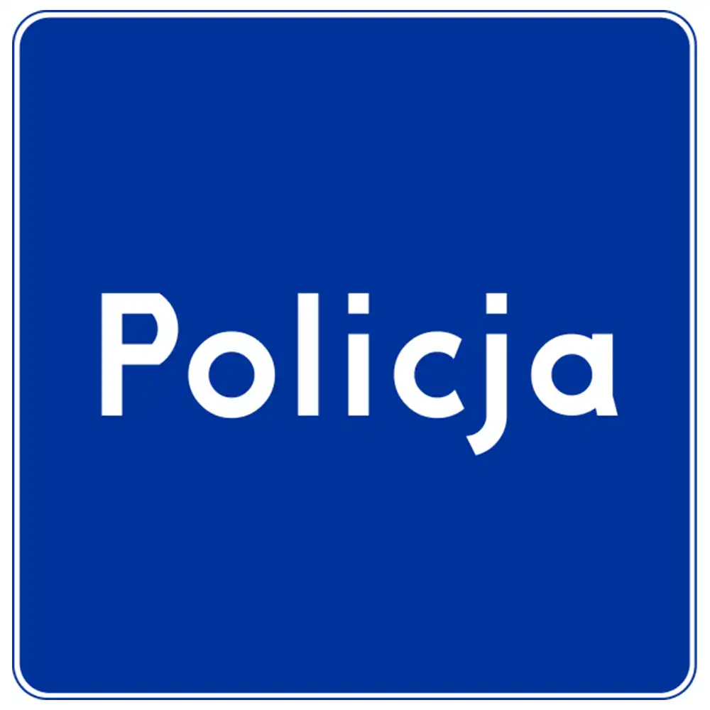 Informuje o tym, że w pobliżu znajduje się posterunek policji lub komisariat.