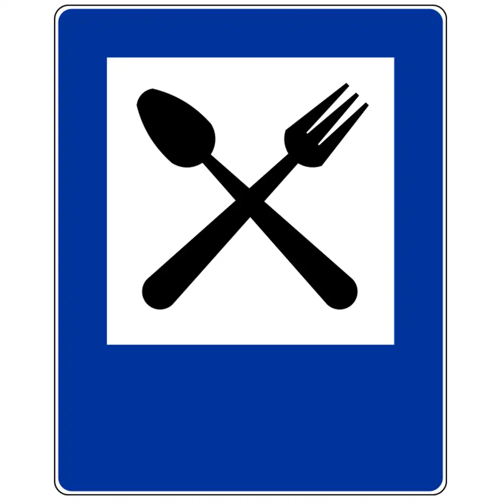 Informuje o wskazanym na znaku obiekcie (restauracji) znajdującym się przy drodze. Znak może być umieszczony w innym miejscu niż po prawej stronie jezdni.