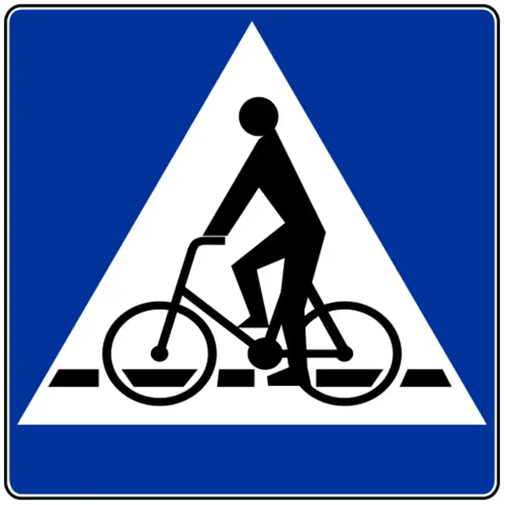 Oznacza miejsce przeznaczone do przejeżdżania rowerzystów w poprzek drogi.