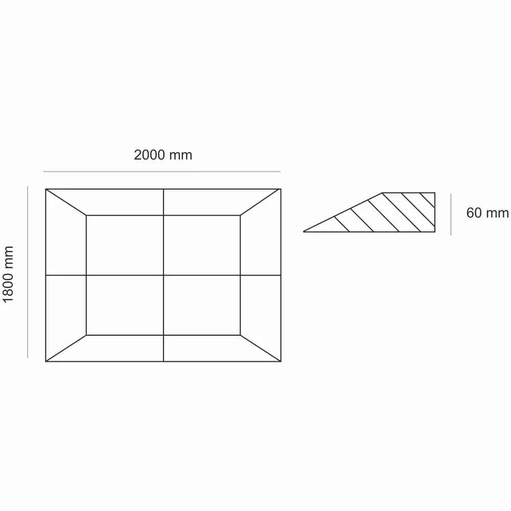 | Wymiary całkowite (dł. x szer. x wys.) | 2000 mm x 1800 mm x 60 mm |